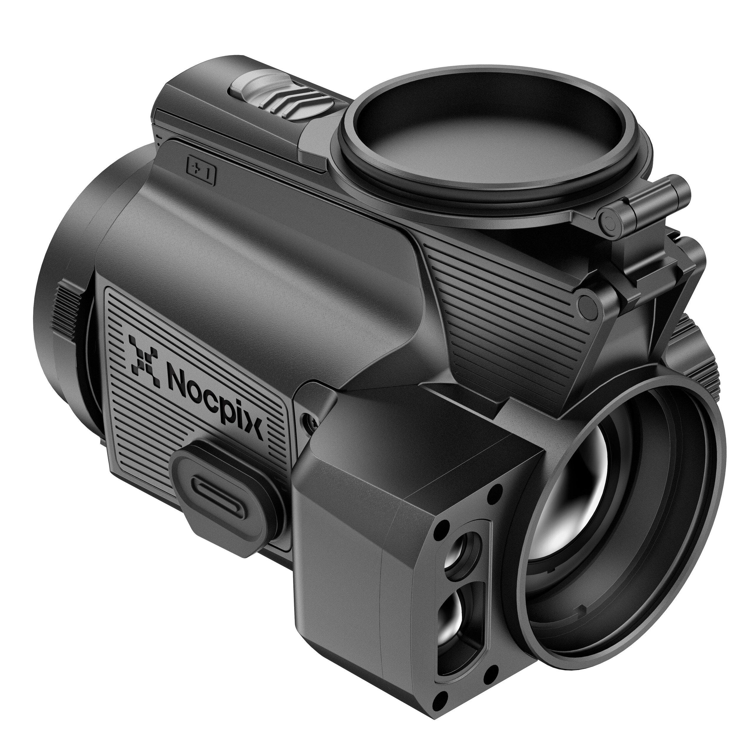 Ein integrierter Laserentfernungsmesser mit bis zu 1.200 m Reichweite ermöglicht exakte Distanzmessungen. Die Entfernungsdaten lassen sich über N-LINK mit weiteren Nocpix-Geräten synchronisieren – selbst wenn diese nicht über eine eigene LRF-Einheit verfügen. Die Verbindung erfolgt unabhängig von der Gerätepriorität, die Datenübertragung funktioniert wechselseitig.